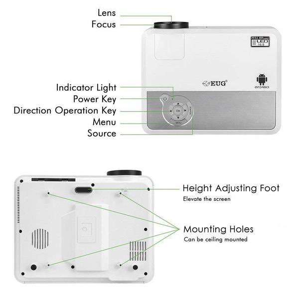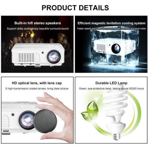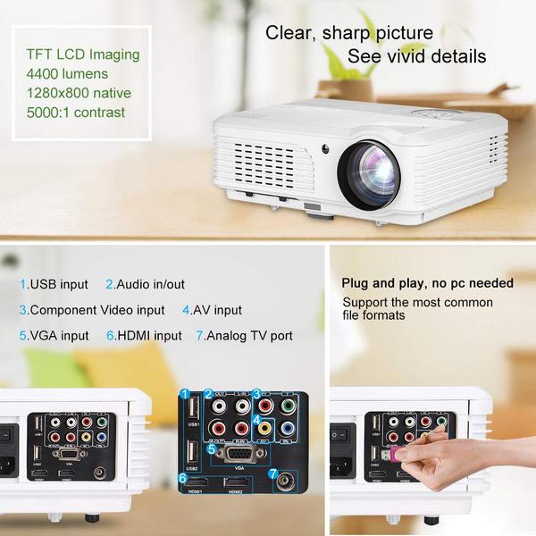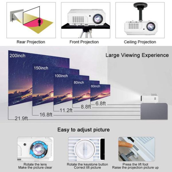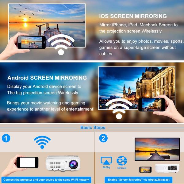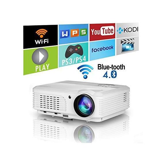 4400 Lumens Wifi Smart Video Projectors Bluetooth Wireless with HDMI USB Speakers WXGA HD LED LCD Home Cinema Theater Projector 1080P for iPhone iPad Android Phone Laptop TV DVD Movie Outdoor