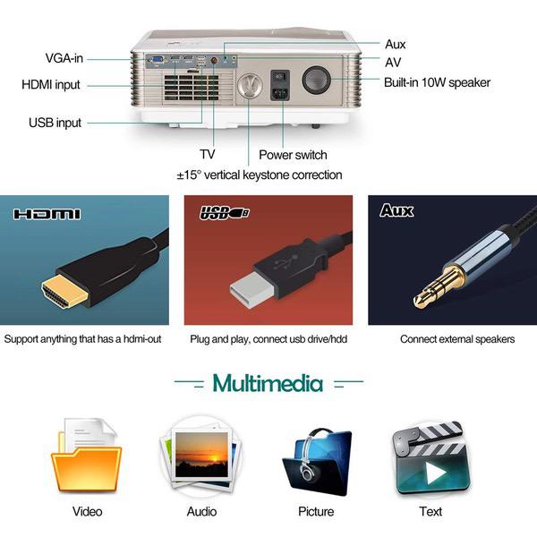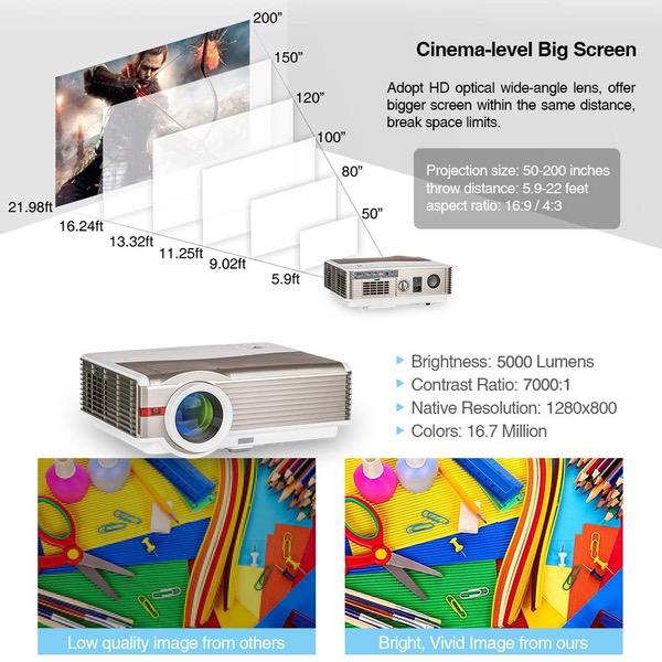 5000 Lumen WXGA Android LCD Smart HD Wireless Video Projector with Wifi Bluetooth,LED Home Theater Outdoor Movie Projector 1080P HDMI USB VGA AV Audio for iPhone iPad TV DVD XBOX PS4 Laptop Game