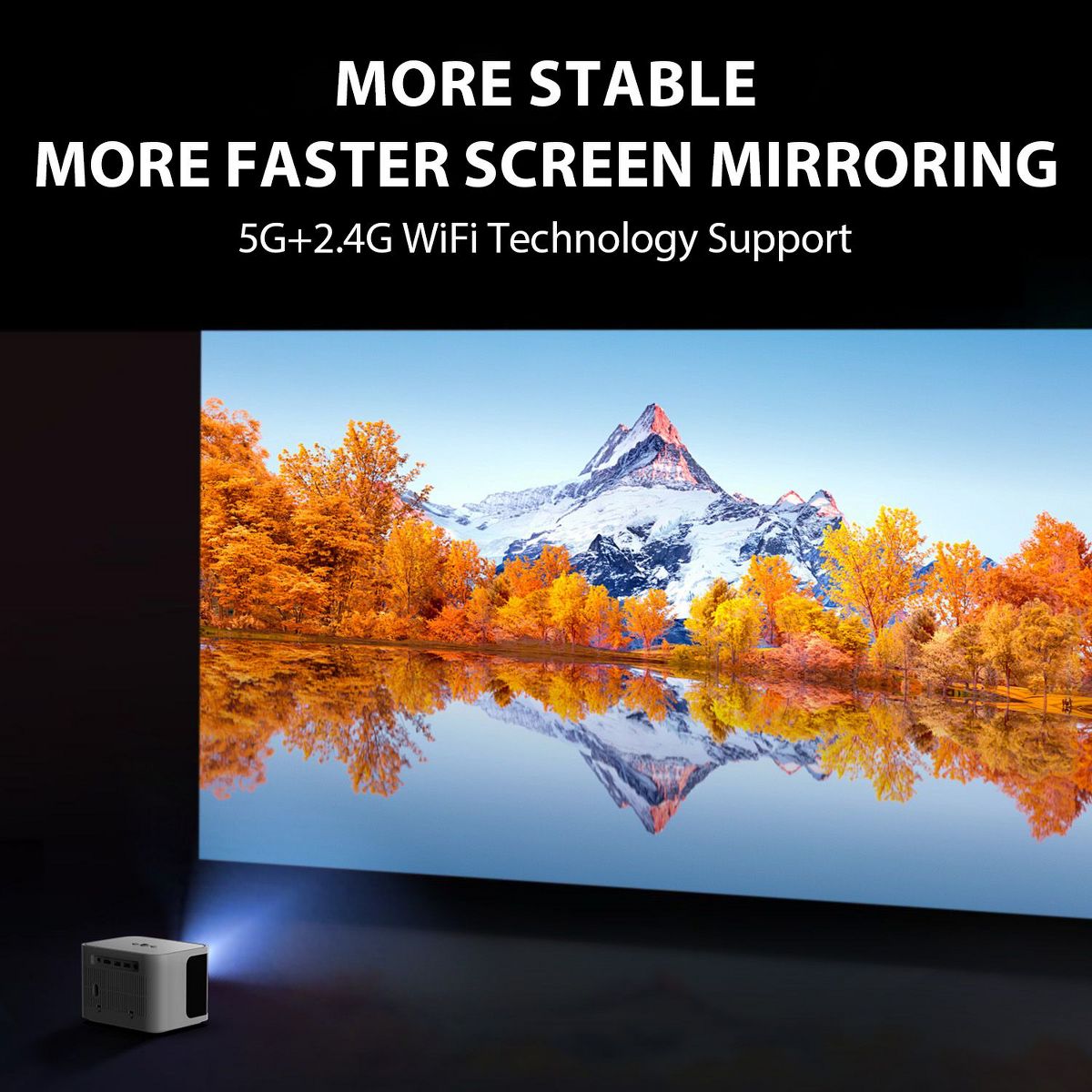 Enjoy big-screen entertainment anywhere with this portable mini projector featuring native 1080P resolution, 300 ANSI lumens brightness, fast 5G WiFi streaming, Bluetooth audio, and flexible image adjustment for home or outdoor movie nights.