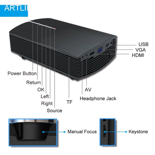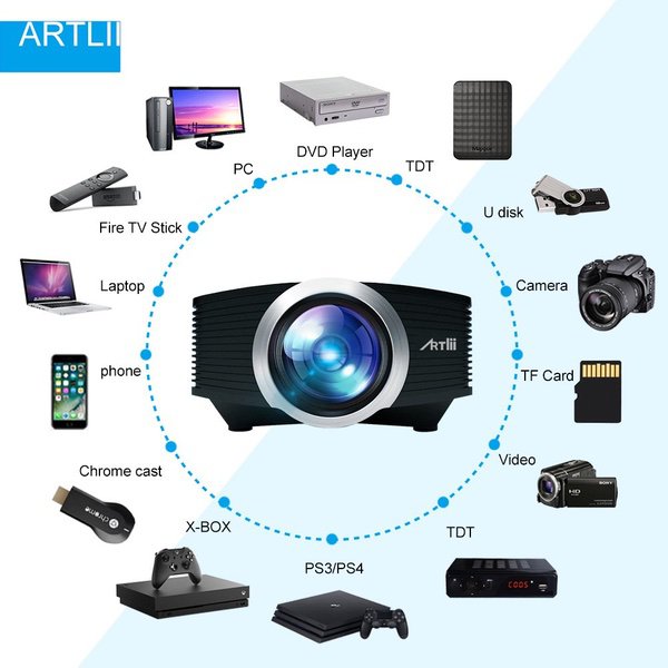 Artlii Mini Projector - Portable Projector for Kids, Eye Protection,Built-in HiFi Speaker,2000 Lumens Brightness,160 Inch Screen,Compatible with Laptop, iPhone Smartphone