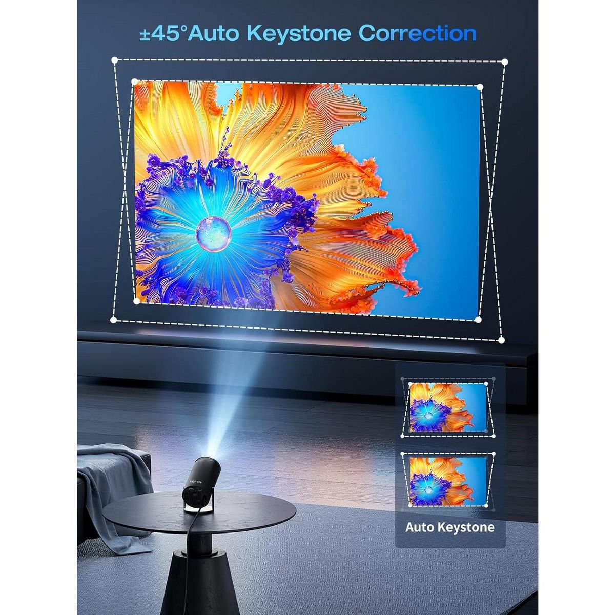 ARTSEA Mini Projector with 4K 1080 Support Portable Projector with 180°Screen Movie Projector Auto Keystone Correction Compatible with Computer