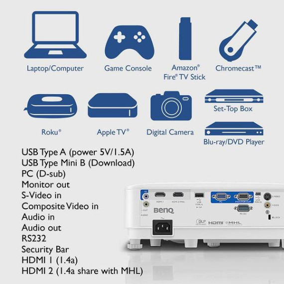 BenQ MW612 WXGA Business Projector | 4000 Lumens | 20,000:1 Contrast Ratio | Dual HDMI