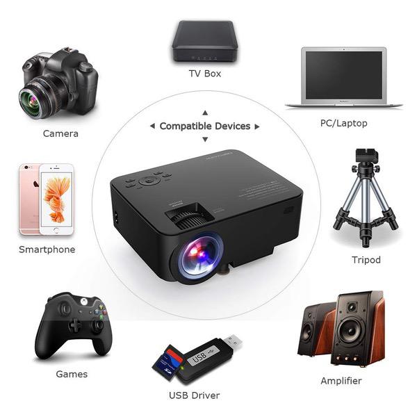 - Large screen Size - 1080p projector meaning you can enjoy your favorite movies on a screen size of between 32-176 inches with a projection distance of 1. 5-5M. An optimum distance of 1. 8 to 2. 0M s a super-clear and bright image