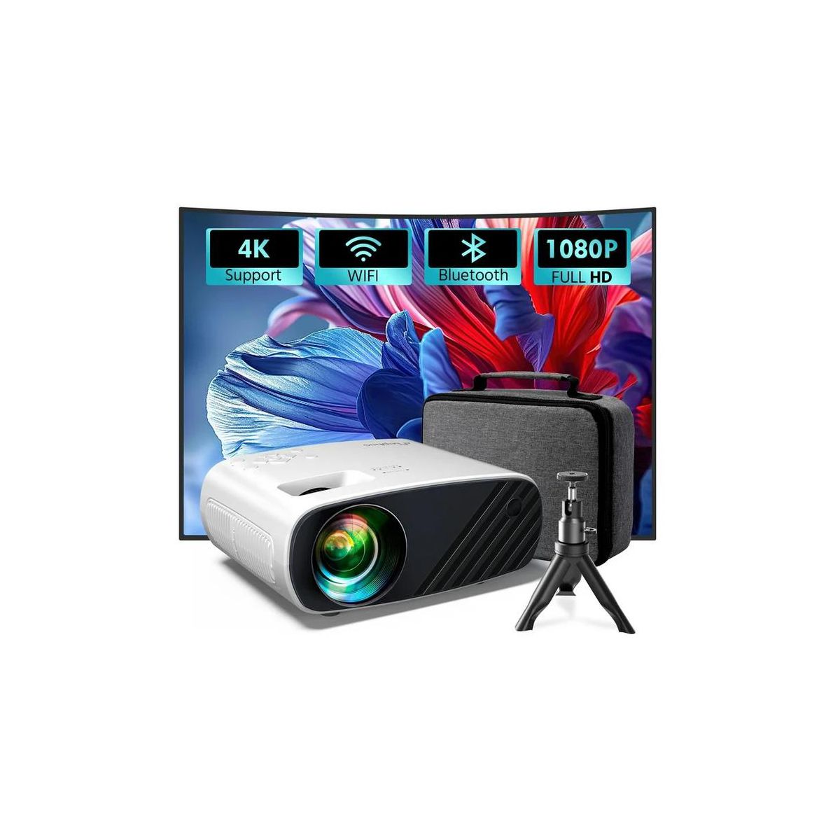 This projector combines many advantages. It has a wide range of compatibility, whether it is iOS, Android or Windows system devices can be easily adapted, providing great convenience for your use. It's as compact and portable as a smartphone. Equipped with a tripod and portable power supply, you can set up your own movie viewing or office space wherever you are. With advanced LED projection technology, it supports 1080P HD resolution and over 16.77 million colors, projecting a 200-inch screen for a stunning visual experience. Meanwhile, an efficient cooling system ensures stable operation, and built-in HIFI speakers let you enjoy high-quality sound without external connections. It also has a variety of interfaces such as USB, HDMI, AV, audio, Chromecast and more. It is compatible with a wide range of devices such as laptops, personal computers, TV boxes, etc. to meet your various needs, making it an ideal projection choice for you!