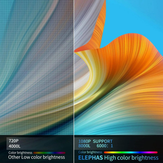ELEPHAS Mini Projector, 1080P LCD HD 8000 L Portable Home Theater Projector, Support Android/iOS/Windows/TV Stick/HDMI/USB