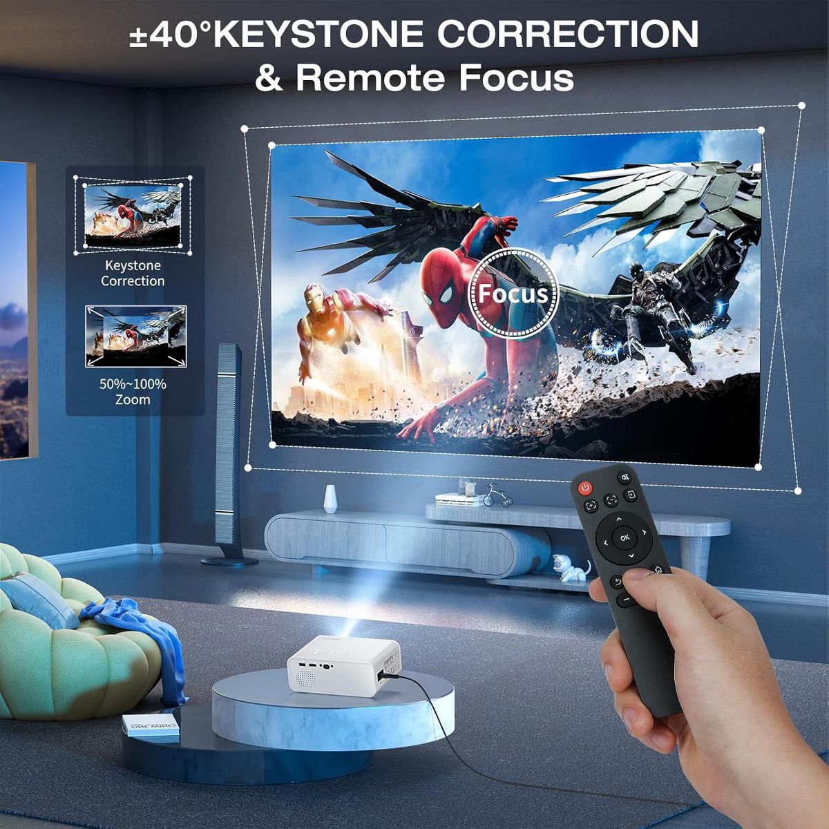 Transform your living space into a cinematic paradise with the ELEPHAS Immersive Home Theater Projector. Featuring native 1080P resolution, 2.4G/5G wireless screen mirroring, and Bluetooth connectivity, this projector offers a crystal-clear and hassle-free viewing experience. Enjoy your favorite streaming services like Netflix, , and Disney+ by using compatible TV sticks like Fire Stick or Roku (TV stick not included). With advanced features like ?40? keystone correction, 50%-100% zoom, and remote focus, you can easily set up the perfect viewing angle and clarity. The projector also comes with a tripod and carry bag, making it portable and convenient for outdoor movie nights or professional presentations. Whether you're watching blockbuster movies or gaming with friends, this projector promises a breathtaking visual experience anywhere you go.