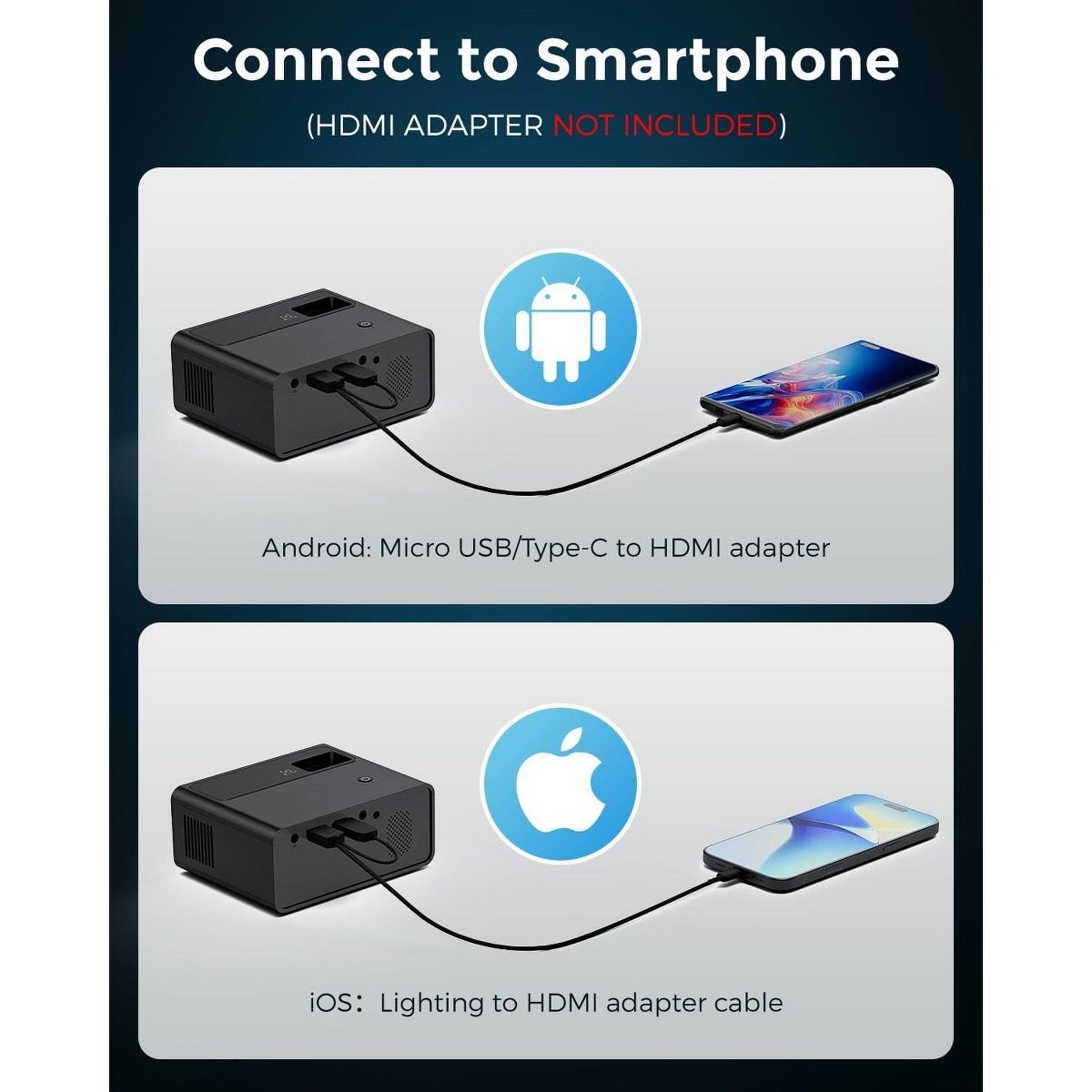 B. Connect iPhone/iPad and the USB port of projector with the original lightning cable.
