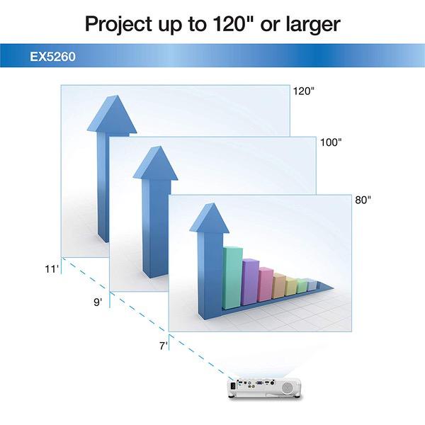 Epson EX5260 XGA 3,600 lumens color brightness (color light output) 3,600 lumens white brightness (white light output) wireless HDMI 3LCD projector