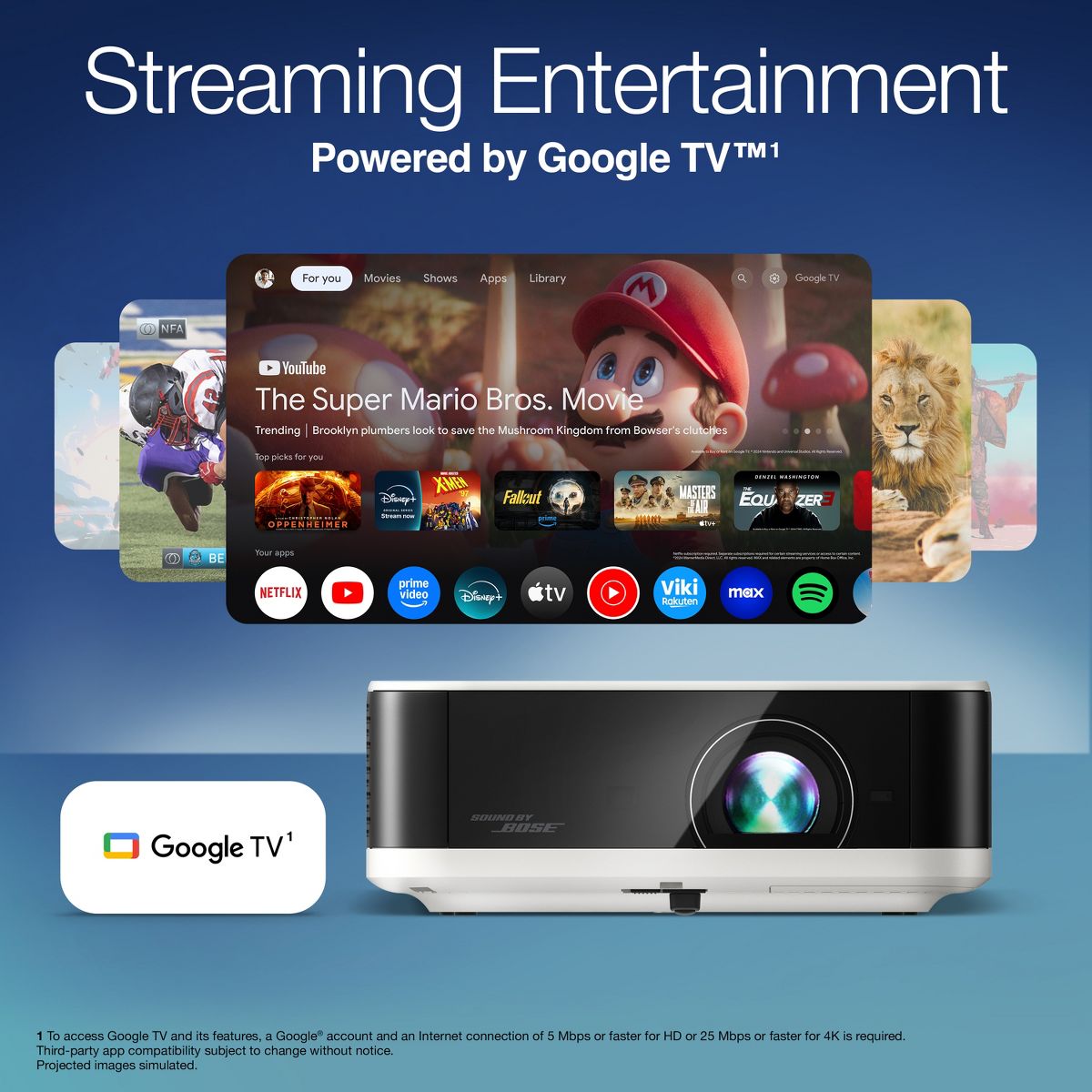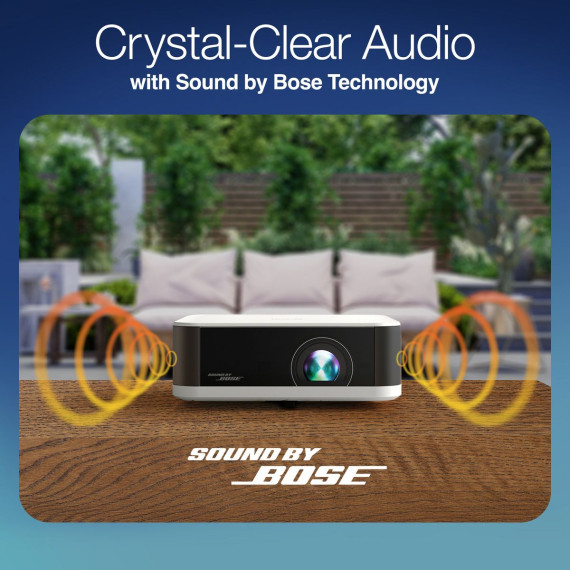 Enjoy immersive sound that fills the room with the world’s first smart streaming projectors featuring Sound by Bose technology. The custom-designed stereo system creates audio you can feel, delivering rich, balanced sound, pulling you—and everyone around you—right into the action.