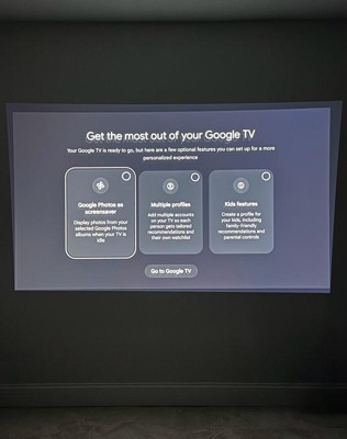 Finding something to watch has never been easier. Just power on your Lifestudio personal lifestyle projector and the built-in Google TV™4 puts over 10,000 streaming apps at your fingertips5, including Netflix®, Disney+®, and Hulu®. Plus, with Google Assistant™ you can use the included voice remote to search across all apps, including live TV and even YouTube™ to find exactly what you’re looking for.
