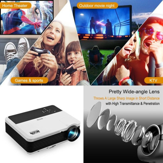 Make sure this fits by entering your model number. HD-QUALITY MOVIES AND GAMES: High Brightness-4600 Lumens with more concentrated pixels native resolution 1280*800, produce a delightfully vivid image with crisp, deep blacks and well defined detail, fill your screen with a bright image. Display 50-200 inches large screen from 6.9FT-21.8FT,. With powerful speakers built in, and 60HZ refresh rate and no warming up design ensure you no jam gaming and movie PROVIDE CONNECTIVITY to HIGH-DEF SOURCE: 2 HDMI inputs, VGA , Ypbpr,Composite Video, 2 USB and TV tuner.Compatible with Blu-ray, HD DVDs, DVDs, HDTV broadcasts, Newer video game consoles and computer games. Plug in your usb stick or use HDMI to get the clearest and sharpest image quality, with free HDMI cable.Support 1080P, 1080i, 720P, 576P, 480P, 576i,480i signals. SO EASY TO SET UP: Instant on/off, without having to go through that irritating Cooling period before you can cut the power.With ±15° manual keystone correction, you can correct images from distortion without any tilt. 25 degree ZOOM IN/OUT to fit your screen,and easier, faster and more exact and convenient to focus by simply rotating the lens. LED ILLUMINATION for LONG LIFE: LED Hybrid light source projector brightness increase,using dynamic enhanced RGB control technology than traditional dlp projector to better maintain the color fidelity.You can project your photos,movies and more in brilliant colrs for duration of 50,000 hrs. At the same time,lower power consumption down to 180W,which is energy saving and environment-friendly. Enjoy excellent reliability and service with EUG projectors. Internationally recognized standards for quality-Certificated by CE,FCC,Rohs,PSE,CCC.EUG Projector, a professional manufacturer over 10 years.12 months warranty,60-days return&refund. Come with top rated parts,fully test ensure the durability of the projectors. Professional and enthusiastic customer service is available for you 24 hours.