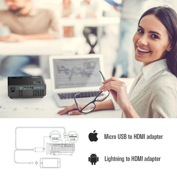 • Lower Fan Noise: iphone projectors are equipped with an innovative cooling system with heat dispersion, as well as a noise suppression technology which cuts fan sound in half