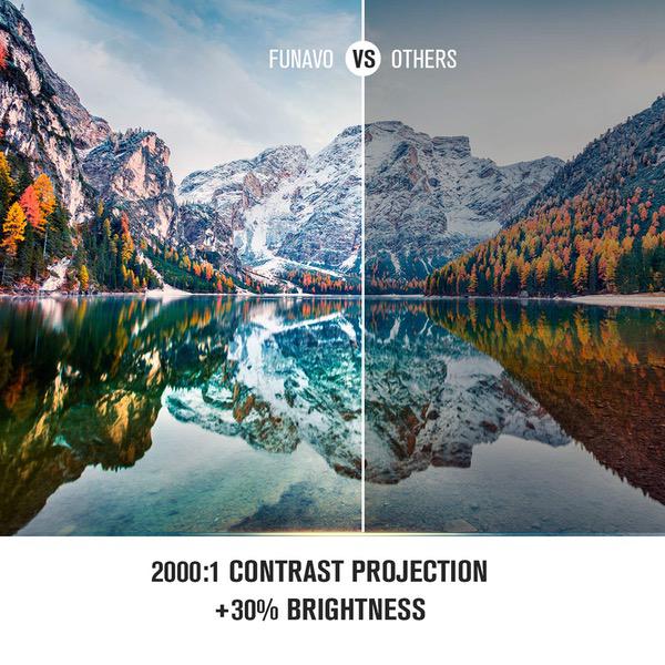 • Superior Home Theater Projector: video projector equipped with 2000: 1 contrast ratio, supported 1080p resolution, screen size from 32’’ to 170’’. Portable projector provides you with a premium home cinema experience with the bigger screen and clearer image