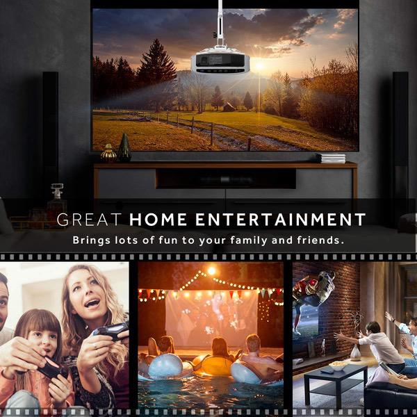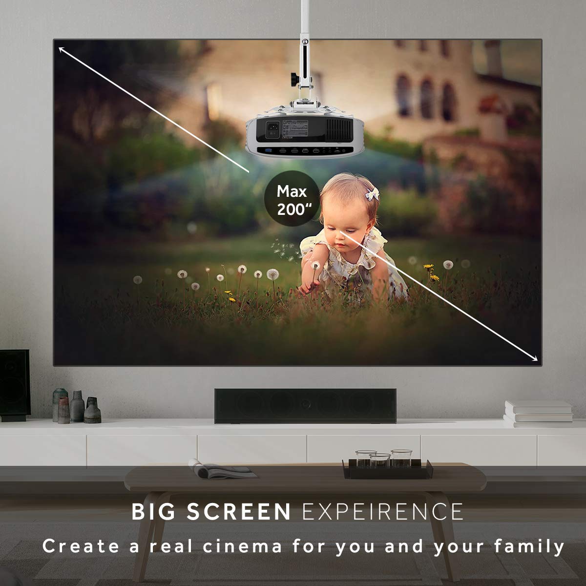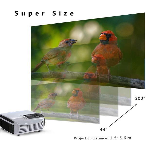 - Enjoy Big Screen — Projection size: 44-200 inches with distance 4.9-18 feet, the shortest distance to focus is 4.9 feet, and the best viewing distance is 10 feet with the image size of 100 inches,which will give you best watching experience.