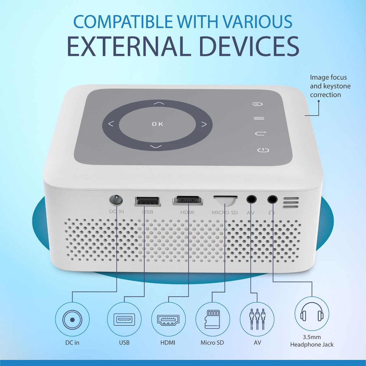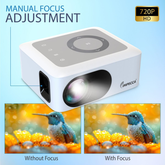 Impecca Portable Home Theater Projector, 80 ANSI Lumens, 720P, up to 120”