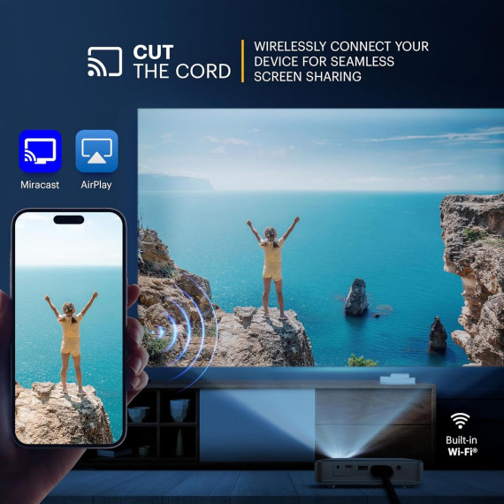 Experience true movie magic anywhere with the KODAK Luma 400 Portable HD Projector. Enjoy stunning 720p HD video and brilliant imaging in a compact, lightweight design. This mini projector delivers vivid, sharp visuals and clear audio with a built-in 1.5W speaker, transforming any space into your personal theater. With Wi-Fi, Bluetooth, USB, and HDMI connectivity, you can stream movies, shows, and games or play videos from smartphones, laptops, consoles, and more. The Luma 400 features automatic keystone correction and 100% offset for perfect alignment every time—no manual setup needed. Ideal for indoor or outdoor use, it combines portability with power, giving you a cinematic experience wherever you go. Complete with premium speakers and remote control, this projector makes entertainment effortless. Supersize your screen—bring home the KODAK Luma 400 today!