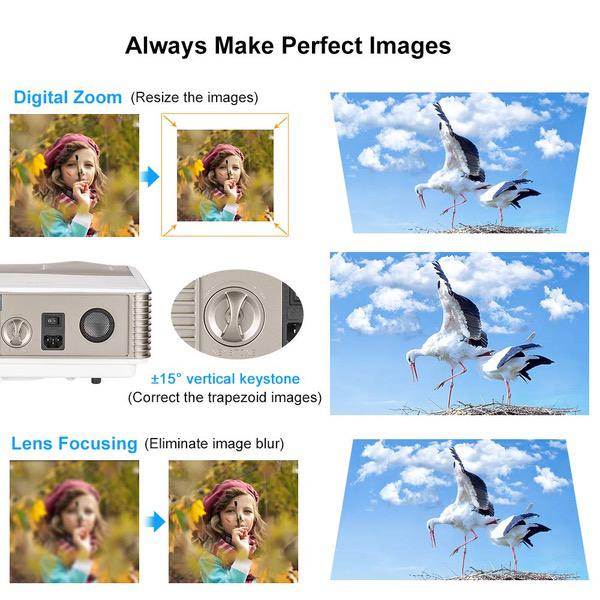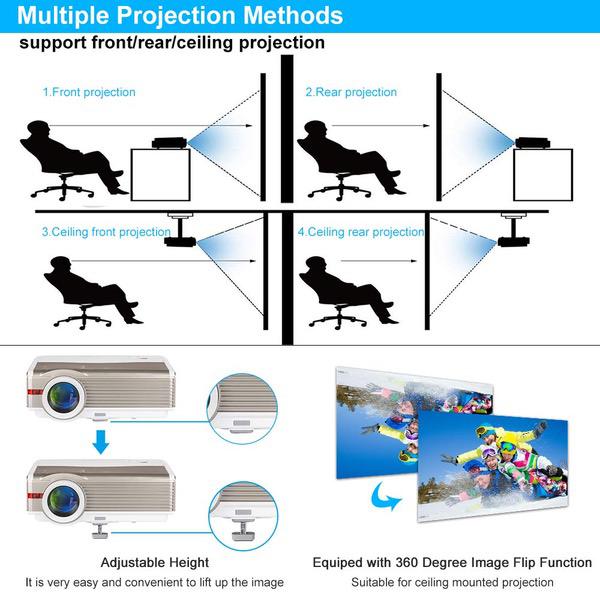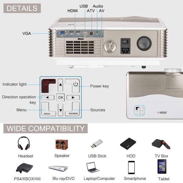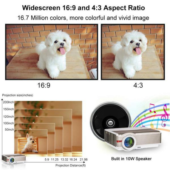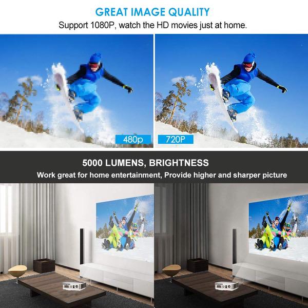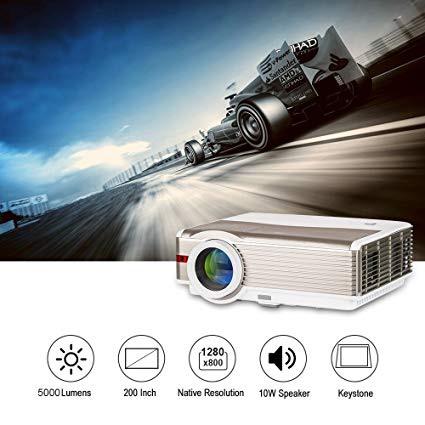 LED HD Home Theater Outdoor Movie Projector 5000 Lumens Full 1080P Support WXGA Multimedia LCD Video Game Projector with HDMI Input USB VGA AV Input Audio out Speakers for iPhone Android DVD TV Laptop