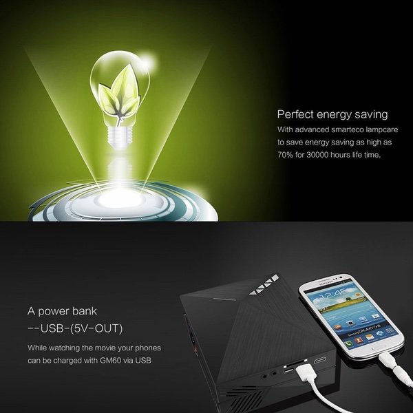 Meer Portable GM60A Multi-Screen Mirroring Display Function Multimedia LED Projector with Optical Keystone for Home Cinema Entertainment