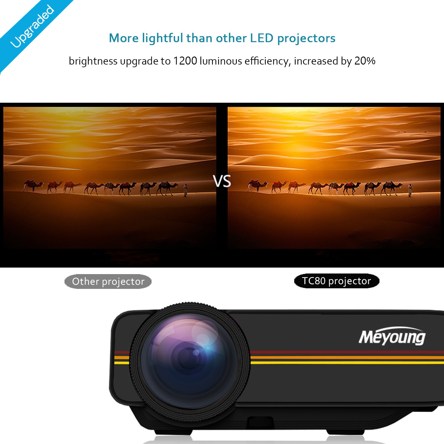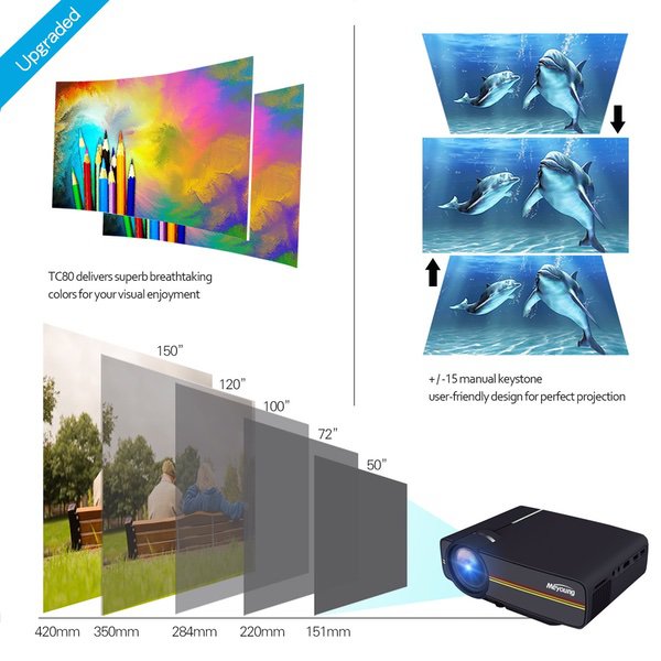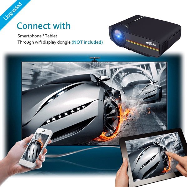 Meyoung Portable Projector 1080P 1200 Lumens 150" for Outdoor Indoor Movie Night, Support Blu-ray DVD Player, Laptops, Tablets, Smartphones and HD Games (Black)