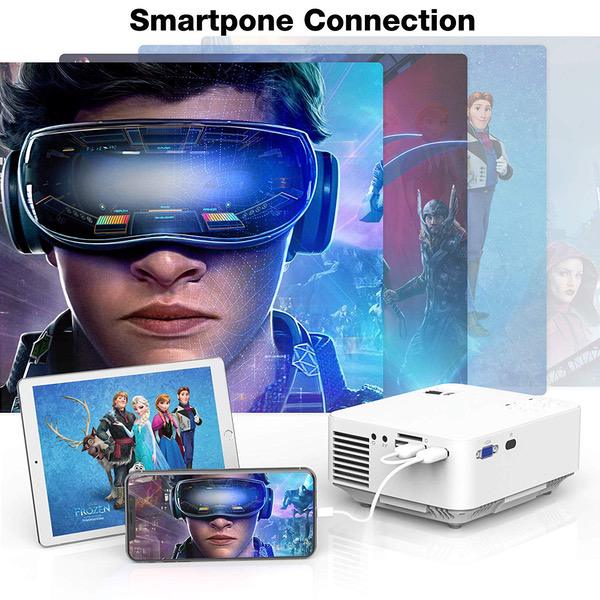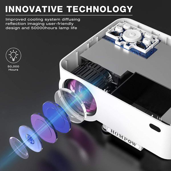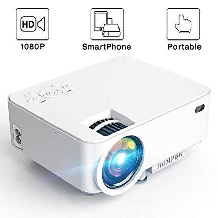 Mini Projector - 2400Lux Hompow Portable Video Projector 1080P Supported 176" Display, 50,000 Hours Led,Smart Phone Compatible with TV Stick/HDMI/VGA/USB/TV Box/Laptop/DVD/PS4 for Home Entertainment