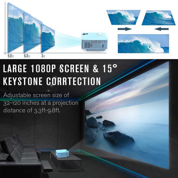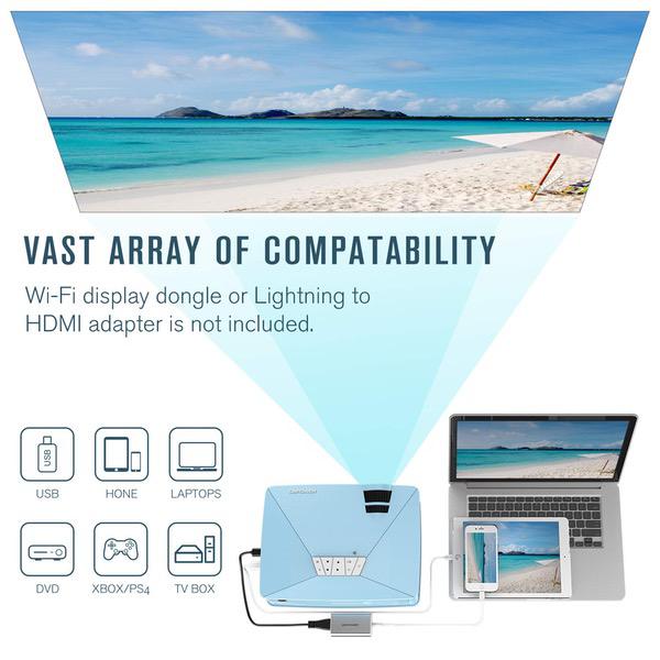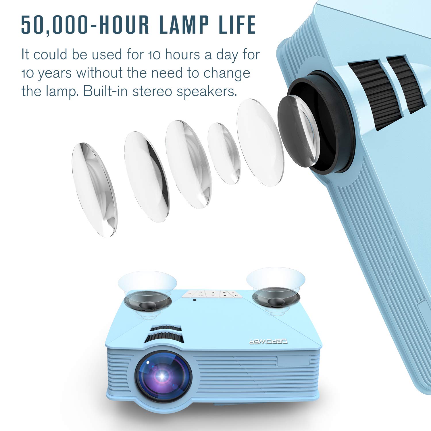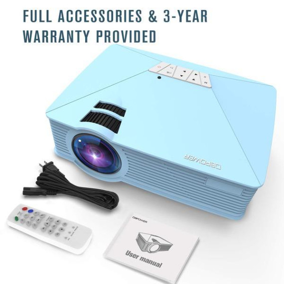 Mini Projector, DBPOWER GP15 +50% Brighter Portable LCD Mini Video Projectors,50000Hours Support 1080P HDMI USB SD Card VGA AV for Multimedia Home Cinema, Movie, TV, Laptops, Games, Smartphones, Blue