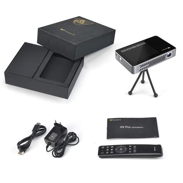 Mini Projector WOWOTO A5 Pro 100ANSI Android 7.1 2+32G Portable DLP Video Projector 150" Home Theater Projectors with BT4.0 Support WiFi Wireless Screen Share 1080P HDMI USB SD Card