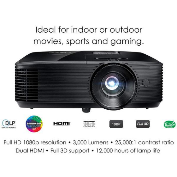 Optoma HD143X Affordable High Performance 1080p Home Theater Projector, 3000 Lumens, 3D Support, Long 12000 Lamp Life, for Indoor and Outdoor Movies, Built In Speaker
