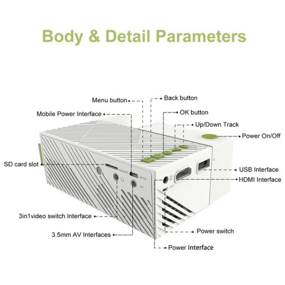 Pico Projector, Artlii Movie iPhone Mini Pocket Laptop Smartphone Projector Home Cinema Video Party White