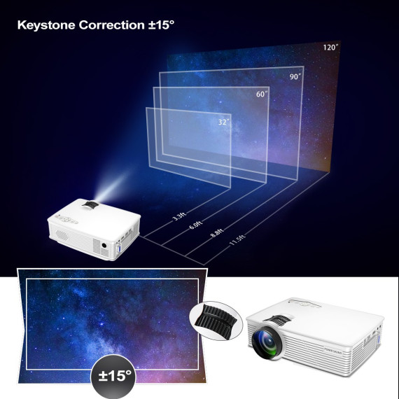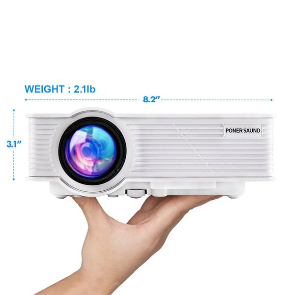 Make sure this fits by entering your model number. ♦ PONER SAUND mini projector — portable home theater, easy to move it from your living room to your bedroom, and watching movies on your bed with your partner ♦ Image up to 170 inch screen display, life-sized images up to 13x larger than a 60" flat panel, on virtually any blank wall or screen ♦ GP9 +50% brighter than other projector, the projector has 2400 lumens of equal color and white brightness ♦ Built-in speaker, for even better sound, add your own home theater sound system ♦ Outstanding support, one-year limited warranty and toll-free support