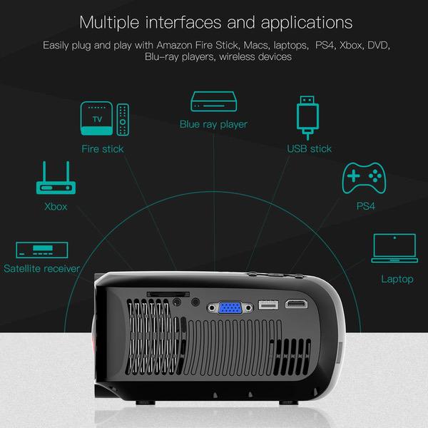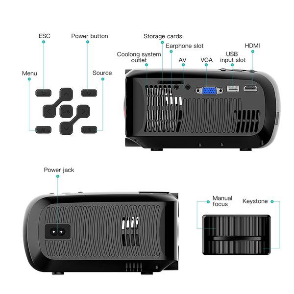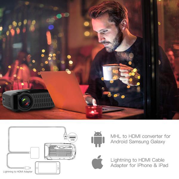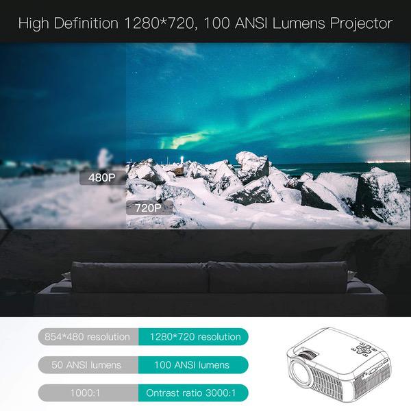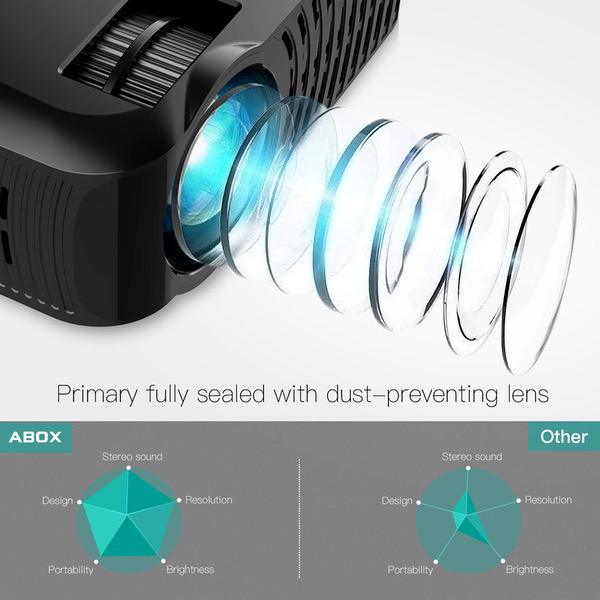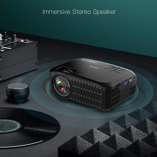 Projector, ABOX A2 LED Movie Video Projector with Full HD Native 720p, 100 ANSI Lumen, 180" Big Screen, Hifi Speaker, Support 1080p with HDMI/USB/SD Card/VGA/AV Ports For Home Theater/Laptop/TV/Phones