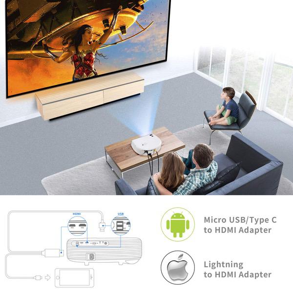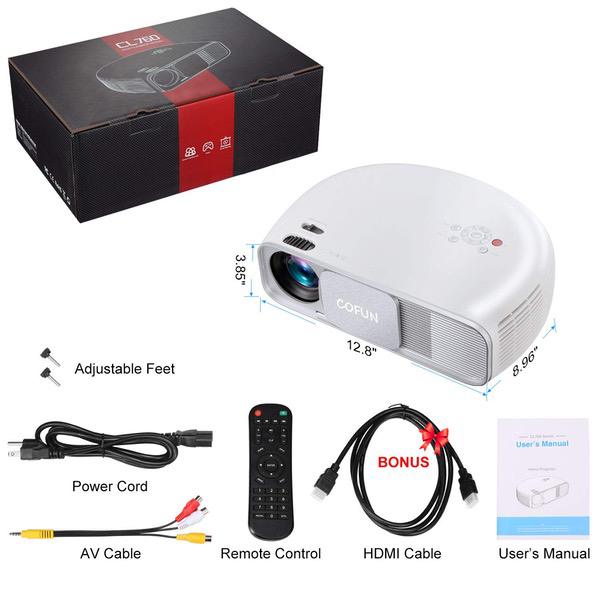 Projector, COFUN CL760 3600 Lux Full HD Led Video Projector Support 1080P for Games/Movies/Home Cinema, Compatible with Fire TV Stick,DVD,PC/Laptop,PS4 by HDMI USB AV VGA, Free HDMI Cable