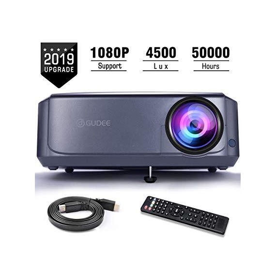 Projector, GuDee Full HD Video Projector for Business PowerPoint Presentations, 1080P Home Movie Projector for Laptop, Smartphone, Fire TV Stick, PS4, HDMI, USB