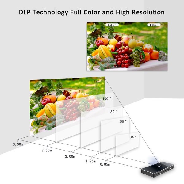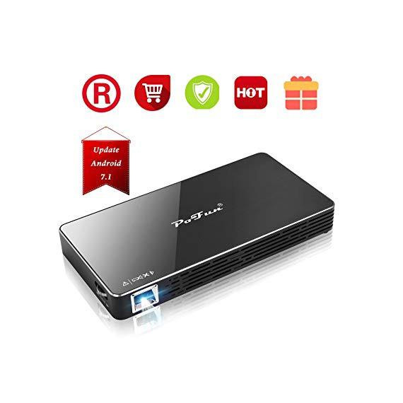 Projector,PoFun Mini Portable Bluetooth Video Andriod 7.1 Projector for Phone,Pad and Laptop,Mobile Projector with 120 inch Display,Pico HD Projector Include Warranty Support WI-FI