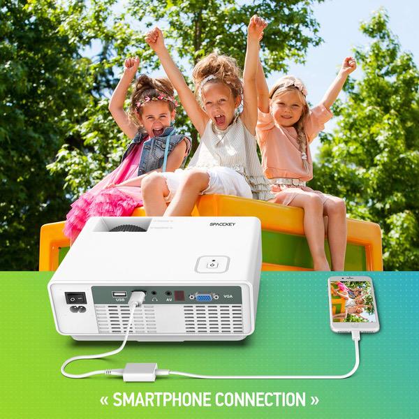 Projector, Spacekey LED Mini Video Projector for Multimedia Home Theater, Supports 1080P, Laptops, Smartphones, Amazon Fire TV Stick & DVDs via HDMI, USB, VGA & AV (RD810)