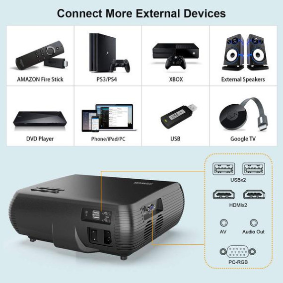 Projector, WiMiUS P20 Native 1080P LED Projector, 5000 Lux Movie Projector Support 4K Video 300" Display ±50°Digital Keystone Correction 70,000 Hrs for Home Entertainment & PPT Business Presentation