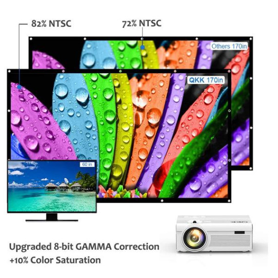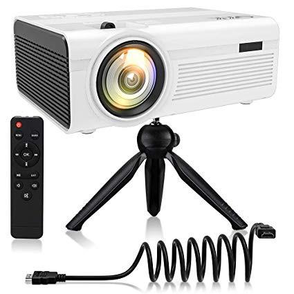 QKK Latest Upgrade 2800Lumens Mini Projector - Home Theater Projector for Indoor & Outdoor Movies & Video Games, Compatible with TV Box, PS4, DVD Player, Smartphones, 50,000 Hours LED Projector
