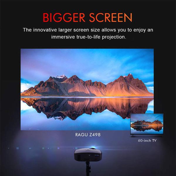 RAGU Z498 Mini Projector, 2019 Upgraded Full HD 1080P 180" Display Supported, 50,000 Hrs Home Movie Projector for PC/MAC/DVD/TV/Xbox/Movies/Games/Smartphone with HDMI/VGA/USB/AV/SD (Black)