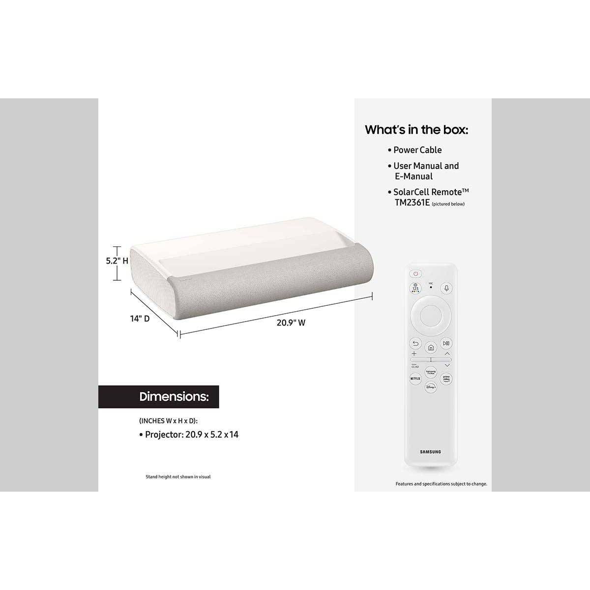 Samsung 120" Class 4K UHD LPU7D Premiere 7 Laser Projector HDR Smart TV - (SP-LPU7DSAXXZA): Remote Control, USB/HDMI, Freestanding, 2500 Lumens