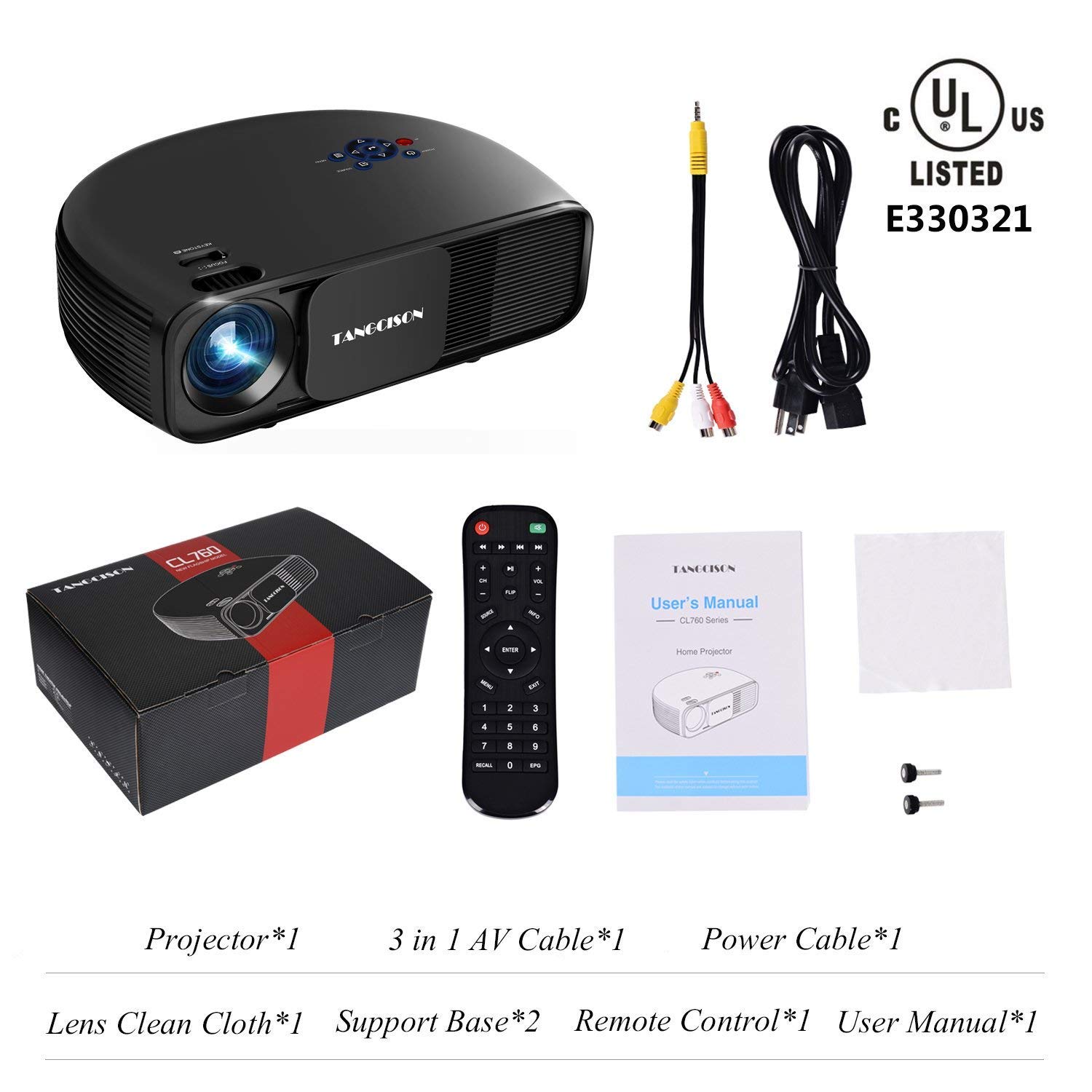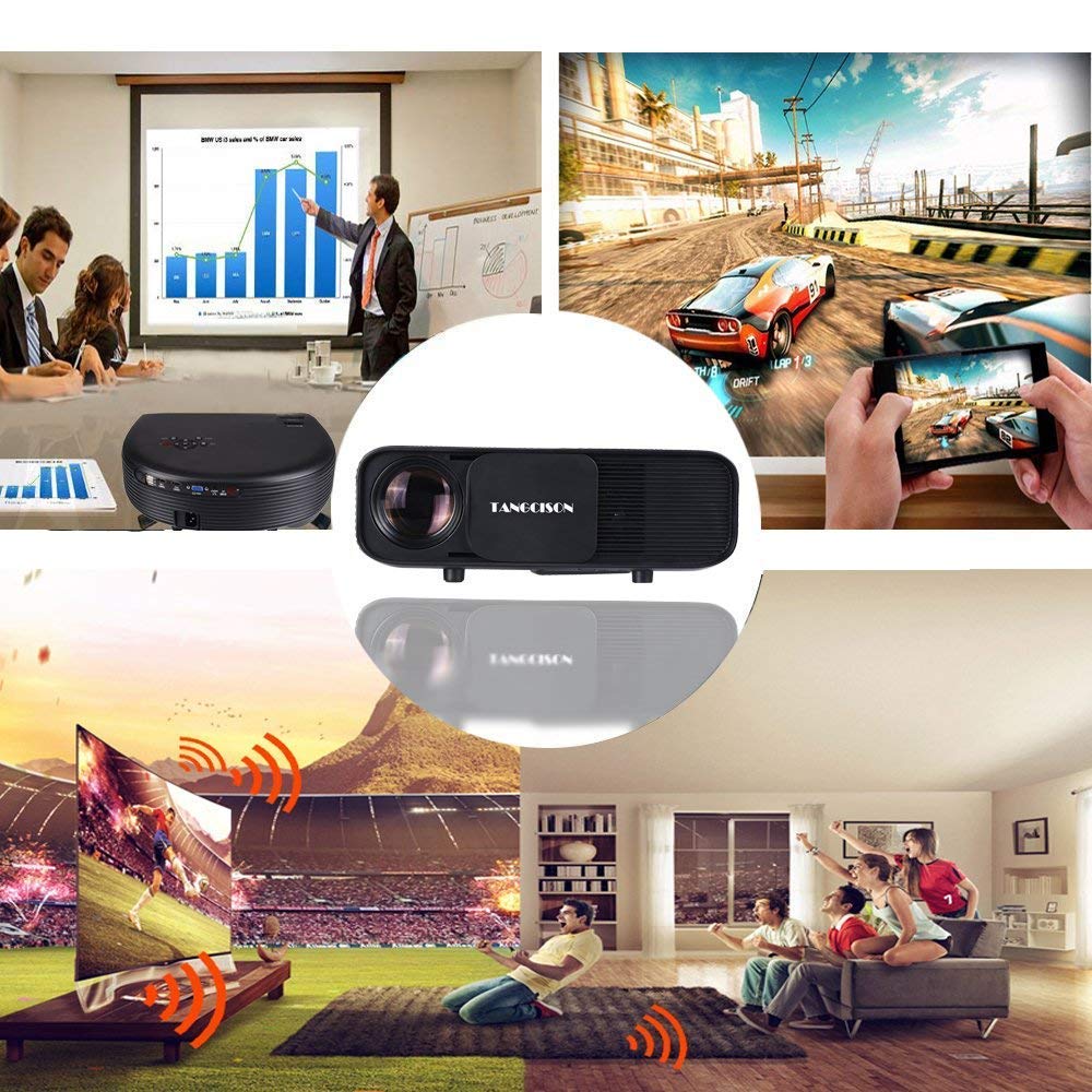 TANGCISON Home Projector, 3300 Lumens LED Video Projector with 150" Projection Size, Multimedia Portable Projector Support 1080P HDMI SD USB VGA AV for Home Cinema TV Game iPhone Andriod