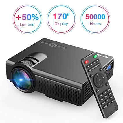 TENKER Upgrade Lumens Q5 Mini Projector, with Big Display LED Full HD Video Projector, Compatible with 1080P HDMI, Fire TV Stick, VGA, USB, AV for Home Theater Entertainment, Party and Games (Gary)
