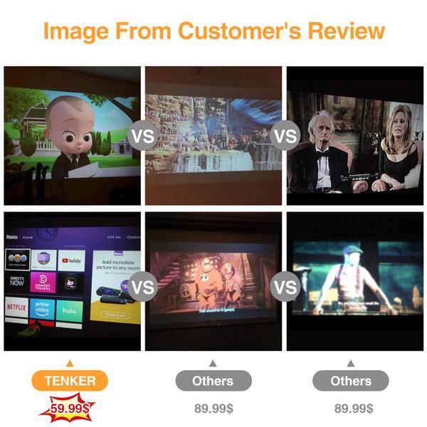 TENKER Upgrade Lumens Q5 Mini Projector, with Big Display LED Full HD Video Projector, Compatible with 1080p HDMI, Fire TV Stick, VGA, USB, AV for Home Theater Entertainment, Party and Games (White)