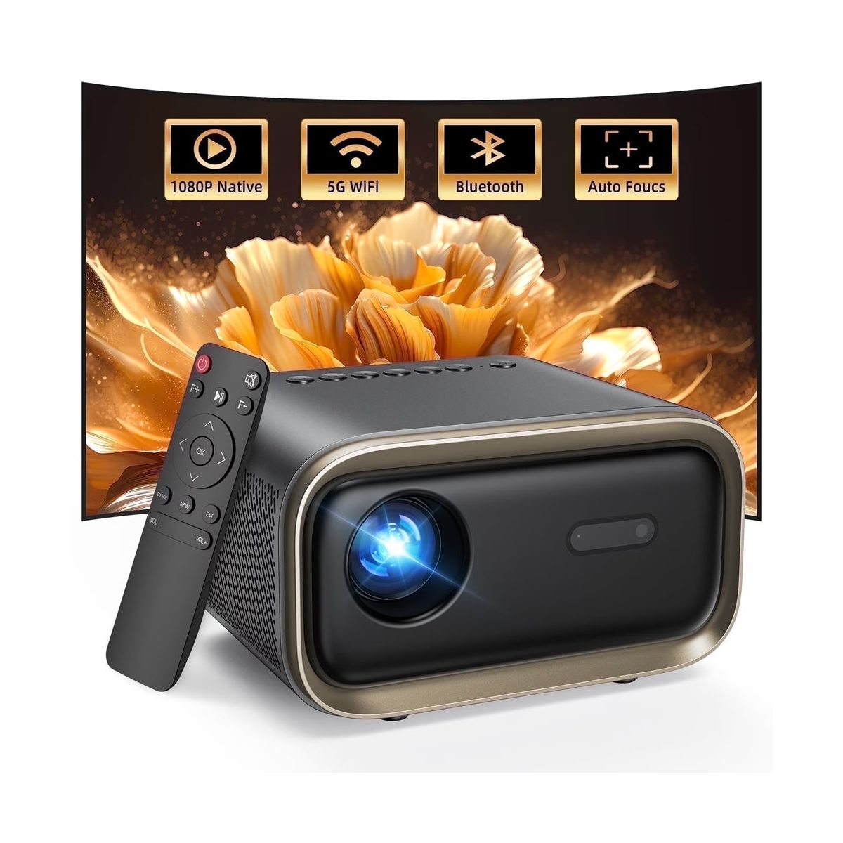 TOPVISION Native 1080P Projector with Wifi and Bluetooth, 4K Support,50,000Hrs Lamp Life,Auto Focus