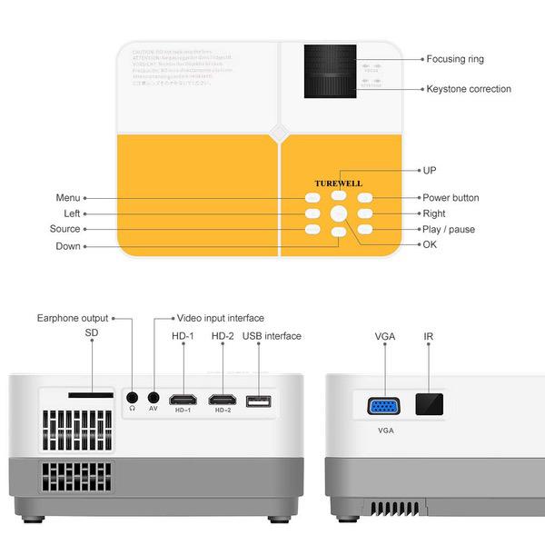 TUREWELL H3 Projector Video Projector 3600 Lumens Native 720P LCD Mini Projector 180" 55000 Hours Support 2K HDMI/VGA/AV/USB/SD Card/Headphone Compatible with Fire TV Stick/Home Theater/PS4