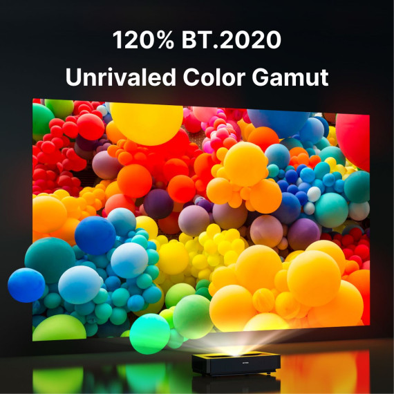 Thor T60 is a 4K ultra-short throw laser TV that delivers stunning visuals with 4000 ANSI lumens brightness, Dolby Vision, HDR10, and 120% BT.2020 color gamut. Its advanced triple laser engine ensures vivid, lifelike images even in bright rooms. With a 0.21:1 throw ratio, it projects a 100" screen from just 7.2 inches away. Features like Android TV, MEMC, ALLM low latency, 3D support, and built-in Google Assistant make it perfect for movies, gaming, and streaming-all in a sleek, quiet, and eye-protective design.