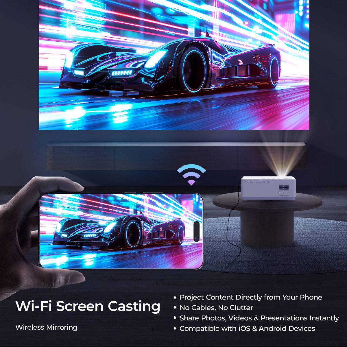 Transform any room into a personal cinema with the Vankyo L3W Neo Mini Projector—a compact, stylish, and powerful solution for family-friendly entertainment. Designed for simplicity and performance, the L3W Neo features a native 720P resolution, delivering vivid colors and crisp detail whether you're streaming your favorite show, gaming, or sharing photo slideshows. Say goodbye to frustrating setups—its digital focus and keystone correction allow you to achieve a sharp, rectangular image in seconds with just a few clicks. Its sleek, modern design blends effortlessly into any home, and the lightweight build makes it easy to move from room to room. The built-in 3W speaker provides clear, room-filling sound out of the box, while Bluetooth connectivity lets you easily pair external speakers or headphones for an immersive or private experience. Compatible with gaming consoles, laptops, and streaming sticks, the L3W Neo is your all-in-one entertainment hub.