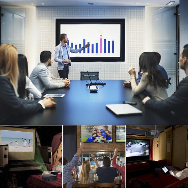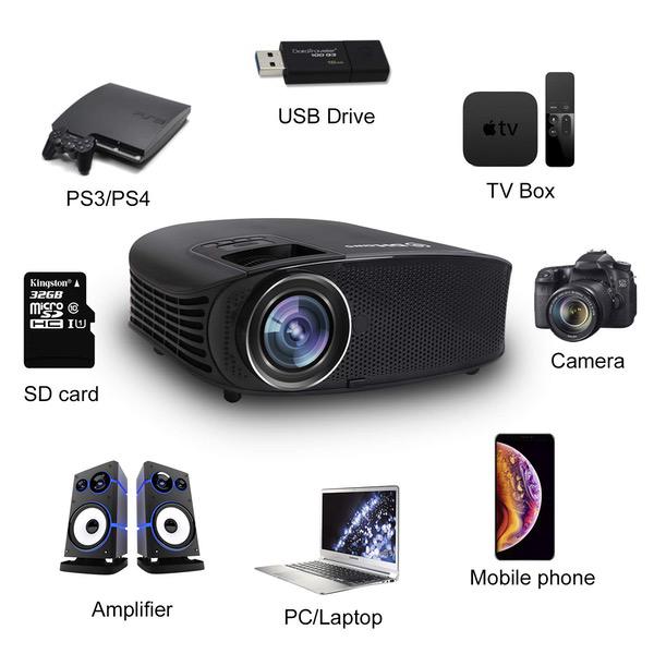 - 5.MULTI-MEDIA CONNECTION: Multiple inputs:HD*2/USB/VGA/SD/AV,outputs:Earphone USB(5V-500MA),you can connect to the device such as PS3, PS4, Xbox One, Xbox 360, Wii-U, PC, Headphone, Outer Speaker, U-disk, Hard disk to enjoy videos or movies. Support Multi-media: Music (MP3, WMA ,M4A, AAC, WAV), Picture, Video, TXT. Where you can use: Outdoor, office, home, KTV etc.