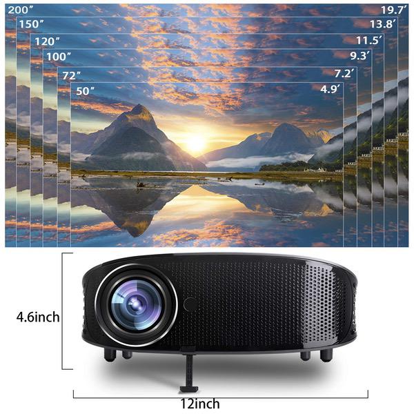- 4.BIG AND HD SCREEN:44"-200" with projector distance 1.5m-5.6m depending on your needs to set-up.Perfect and convenient for outdoor or indoor entertainment. Bringing you ultimate watching experience.There is a stand foot on the bottom of the projector, you can adjust the keystone correction±15°.There are also 4 holes on the bottom of the overhead projector,it can be mounted to ceiling for business PowerPoint, home theater and outdoor wedding party