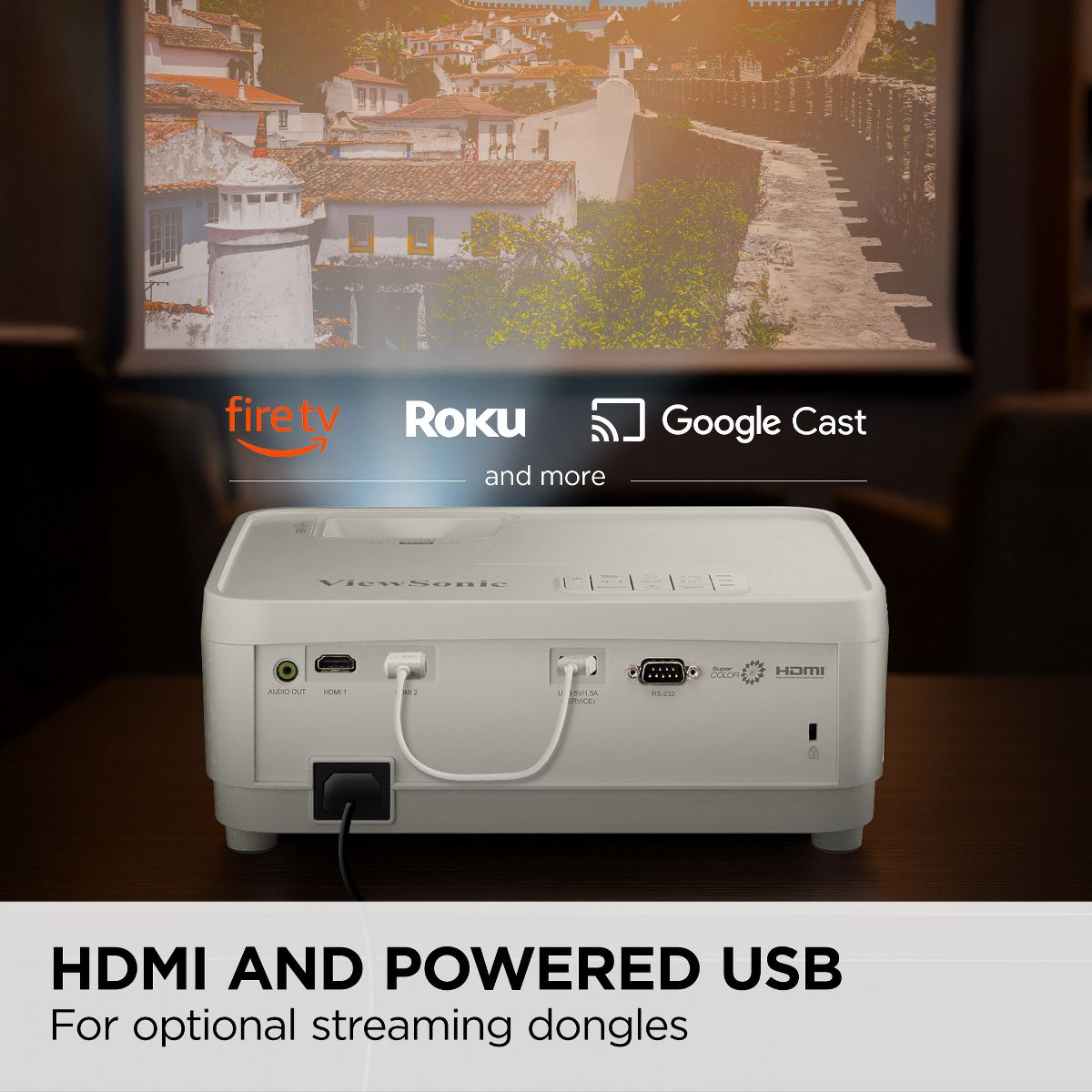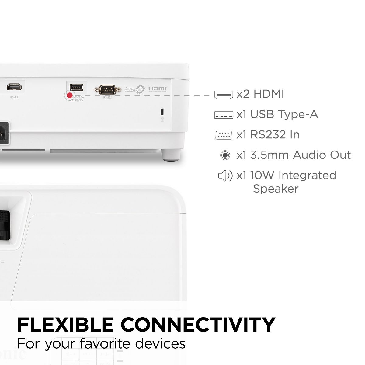 Transform your living room into a home theater with the ViewSonic® PX700HDH projector. Project huge, bright Full HD images up to 300 inches, creating an immersive movie experience. With 3,700 ANSI lumens of brightness, enjoy vivid, clear pictures even in rooms with ambient light. SuperColor™ technology delivers rich, vibrant colors that bring your favorite films and shows to life, while a high 22,000:1 native contrast ratio unveils hidden details for enhanced picture quality. With a long-lasting lifespan of up to 20,000 hours, this projector delivers more movie nights and less maintenance hassle. Easily connect all your devices with dual HDMI inputs and USB power – perfect for Blu-ray players, gaming consoles, and streaming sticks. The ViewSonic PX700HDH is the perfect, affordable way to bring the big screen home.