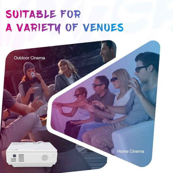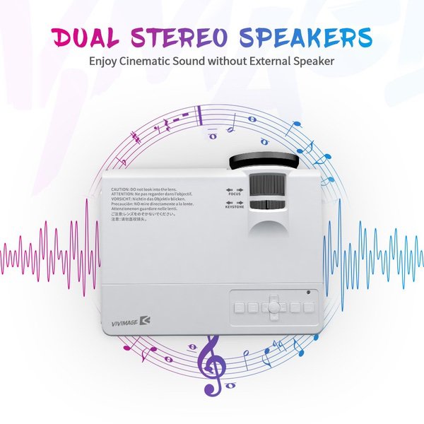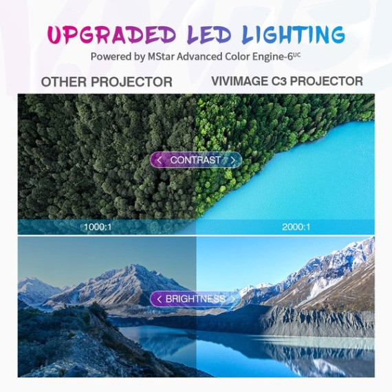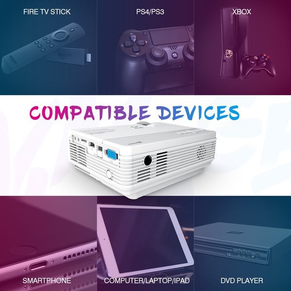 VIVIMAGE C3 Portable Projector with 2600 Lux, Mini Home Cinema Video Projector, Support 1080P 3D, TV Stick, PS4, Xbox, Laptop and Smart Phone with HDMI, VGA, AV, USB