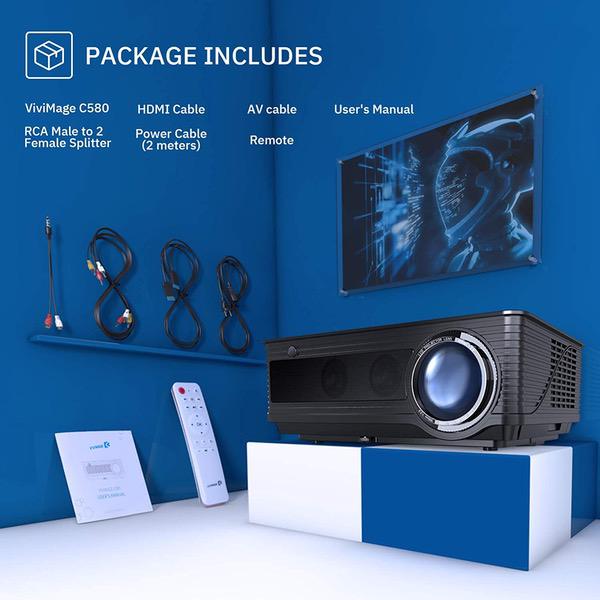 • 【Enjoy Awesome Visual Experience】 ViviMage C580 Movie Outdoor Projector provides awesome visual experience. 1280 X 800 native resolution is suitable for professional use and provides +80% brightness than ordinary projector. MStar Advanced Color Engine provides contrast of 4000:1. Great choice as home cinema for movie nights for the outstanding projection outcome.